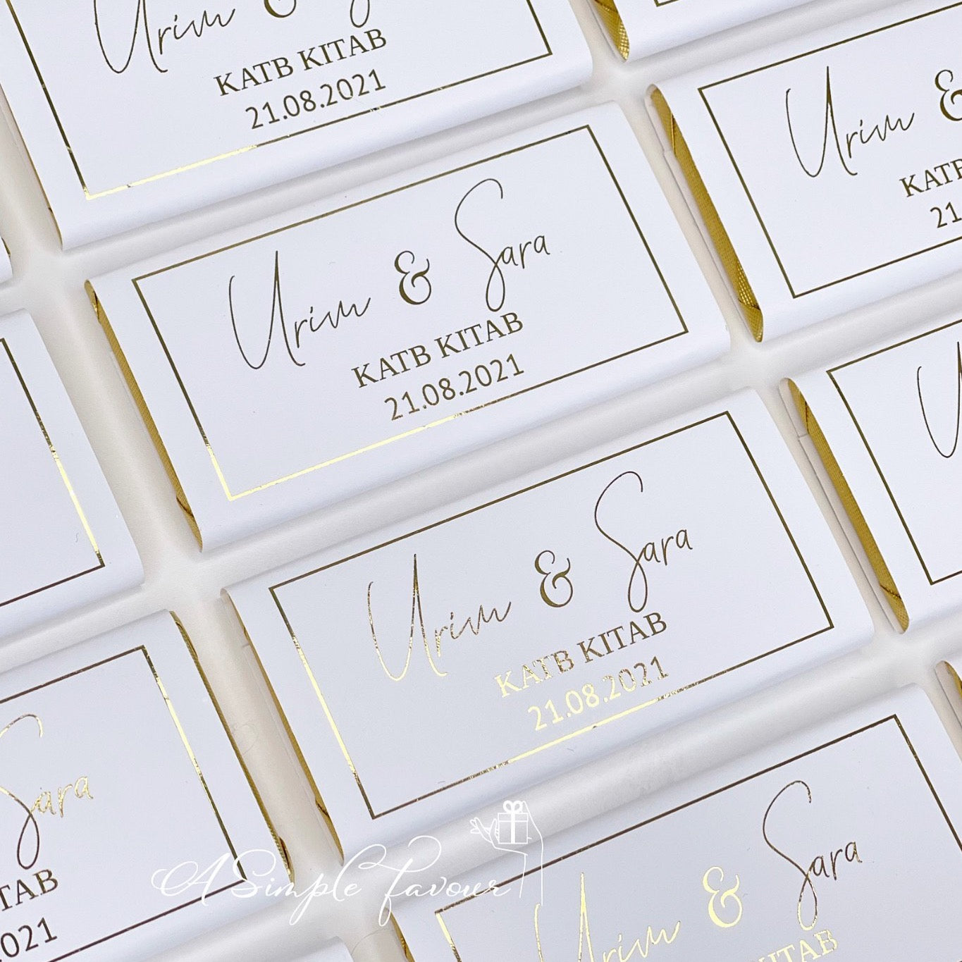 Our white with shinny foil writing Chocolates are perfect for any occasion.